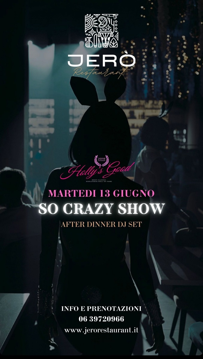Torna martedì 13 giugno il consueto appuntamento con il So Crazy Show, il format creato e diretto da Holly’s Good, in veste di coreografa e direttrice artistica, per il dinner show del Jerò Restaurant di Roma.