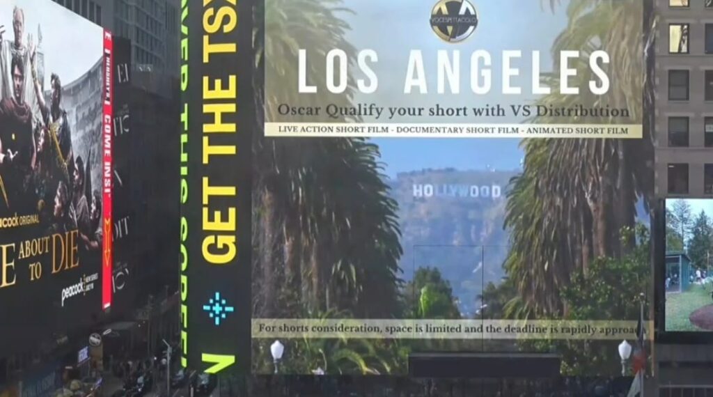 Voce Spettacolo, casa di produzione e distribuzione cinematografica con sede a Matera ed operativa a Los Angeles, è orgogliosa di annunciare un evento straordinario che segna un nuovo capitolo nella storia del cinema lucano: la proiezione dello spot del VS Oscar Qualifying Program sugli schermi leggendari di Times Square.